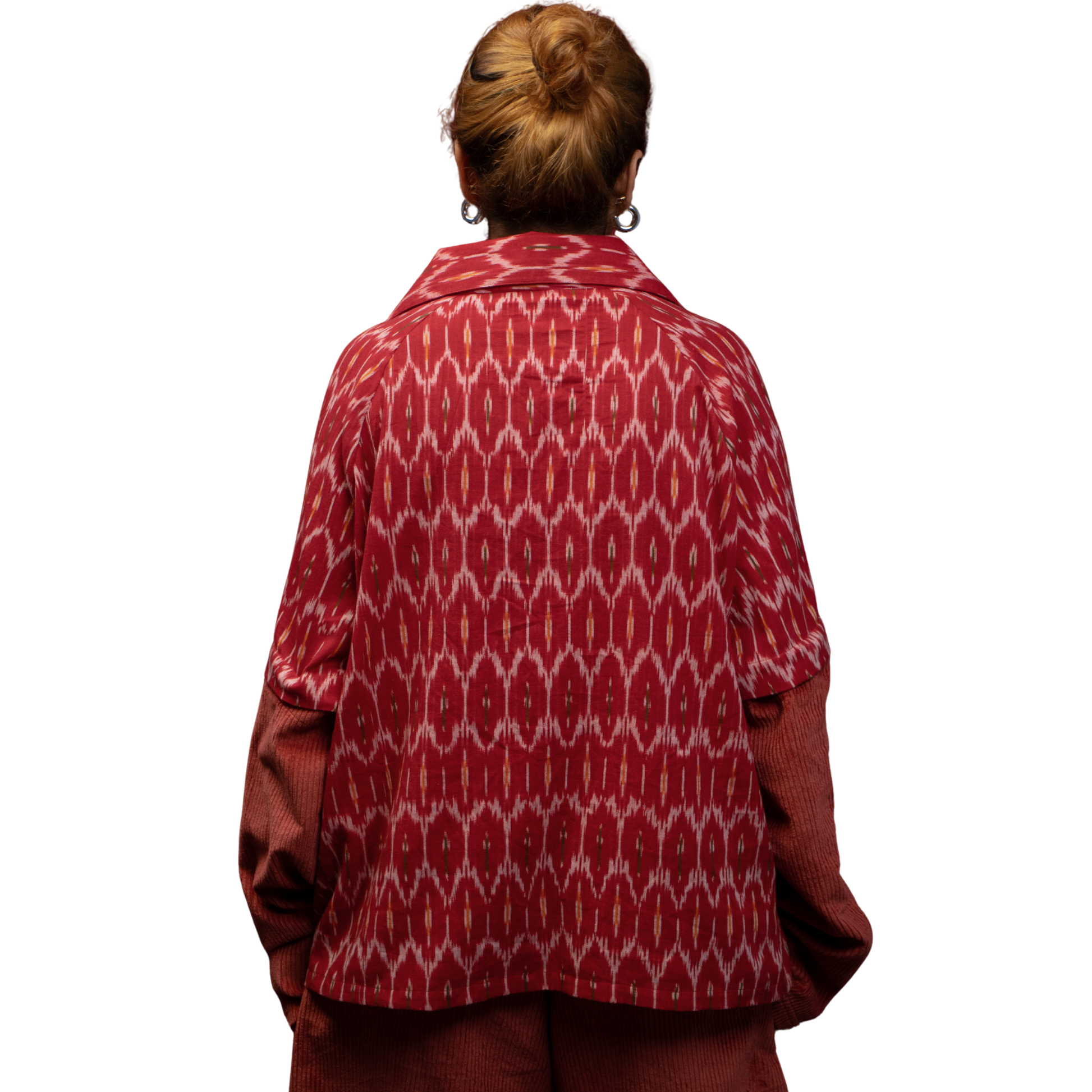 The Kamana Ikat Shirt is crafted using authentic handwoven ikat fabric and designed in-house by Saanjh.